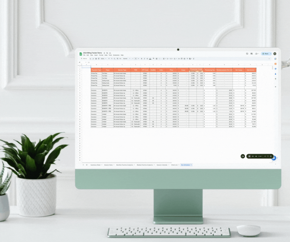 When you purchase the tracker, you will receive access to the Insurance Billing Tracker Google Sheets workbook as well as the tutorial videos via ThriveCart. They are set up as a course to walk you through step-by-step how to set up the tracker specifically for your practice.